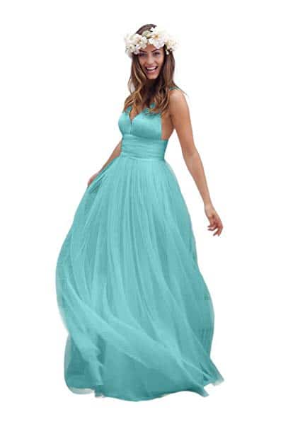 This dress is made of Tulle which remains beautiful in beach sand. That’s not all; you have more than 30 colors to choose from. So whether you’re looking for a color that makes you look more modern or a goddess, you’ll be able to find it. This dress can also be transparent (especially color white), so it will bring out your sexiness. You can wash the dress or drip dry it.