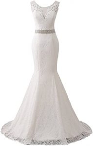 Another feature you need to pay attention to is the built-in bra. And with the double V-neck, you can still show a bit of cleavage. If you want a custom made size, you simply send your measurements of bust, hips, waist, and hollow to the floor. You can also choose between white and ivory color. Without a doubt, this is the best beach wedding dress for women.