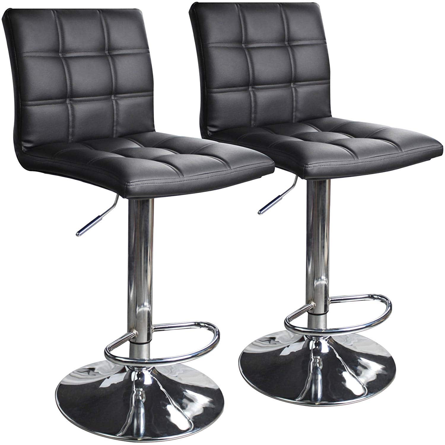 With the help of 360 swivel, it is a bar stool that is highly comfortable for the patrons. Also, the barstool is available in 11 color options, as well. It comes in a set of 2. With high-density foam, the seat is comfortable. On the top, there is a black leather material, which means that durability is on the higher side. The polished chrome base provides it with an aesthetically appealing look.