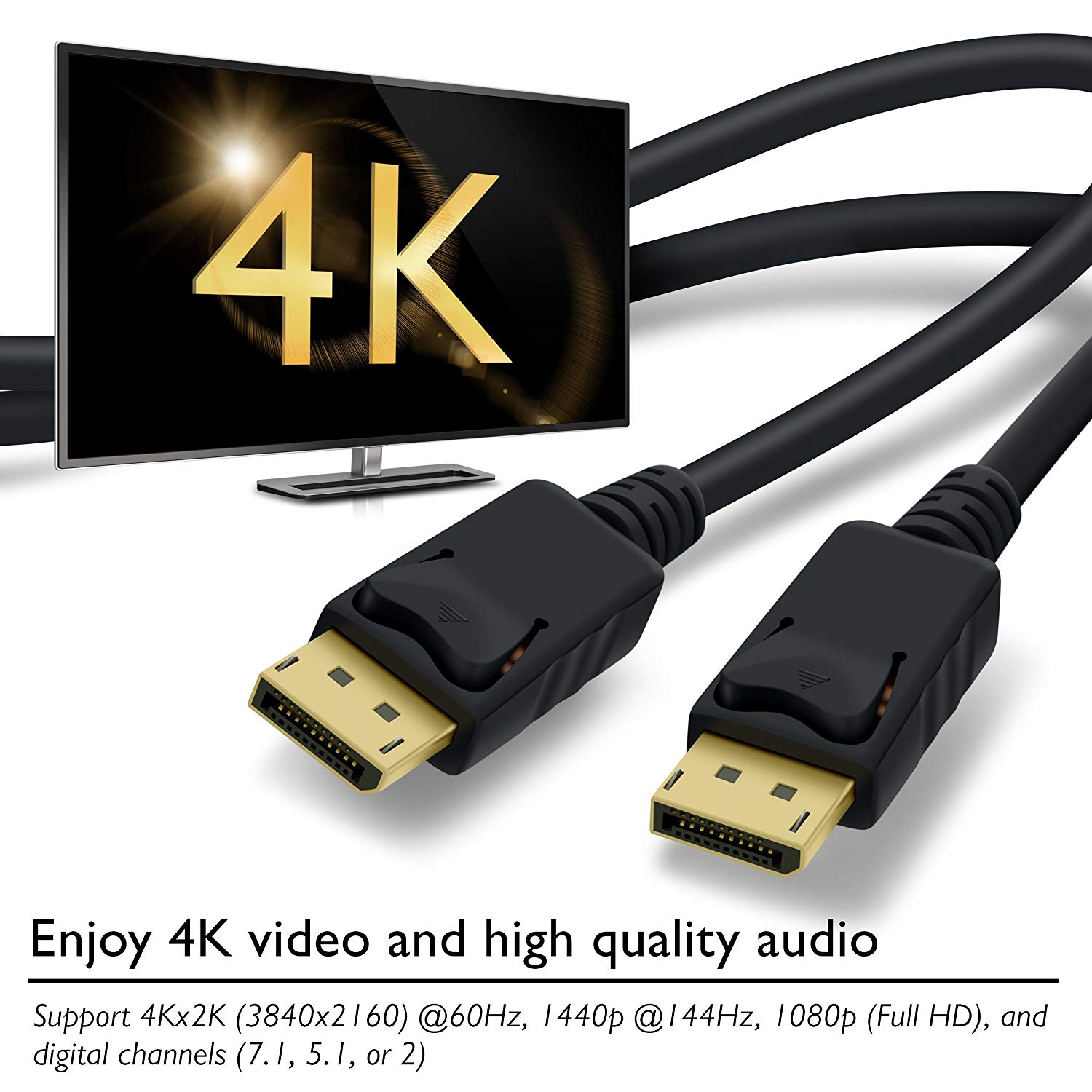 The cable supports resolutions of up to 3840 by 2160 and high-definition videos. This display port provides you with a secure and reliable connection any time you need it. It has pure copper conductors and triple metal shielding that enhance a perfect performance.