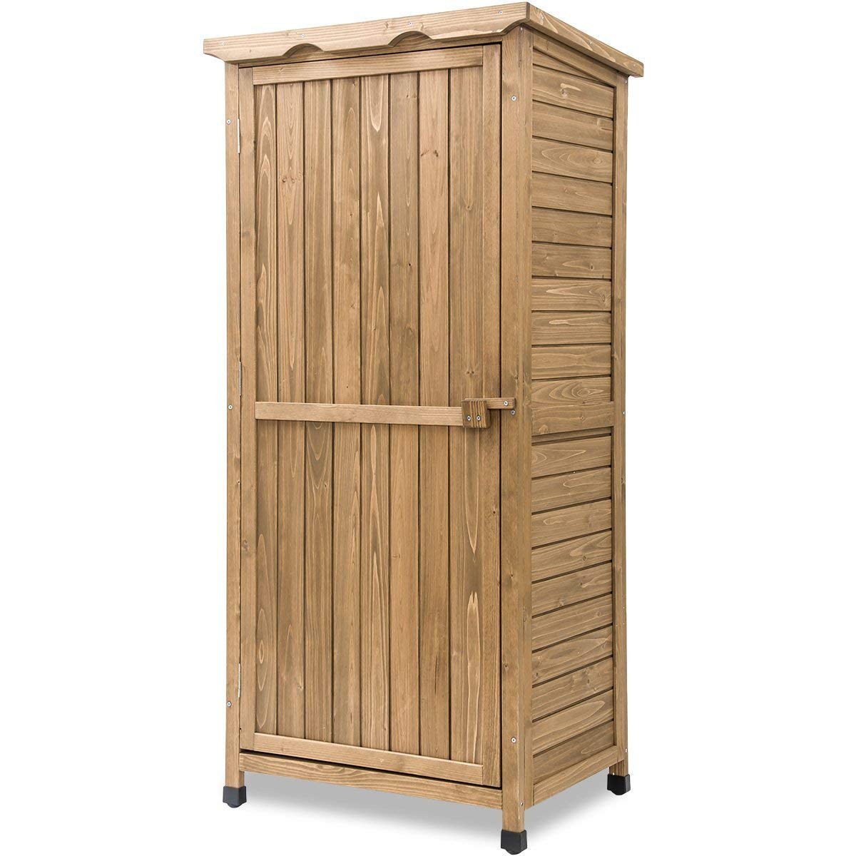 A lockable storage shed will always assure you of the safety of all your items. This is one convenient and lockable shed that you can use for keeping different items safe. It features two metal latches that will aid in locking the door. Second, to this, the storage shed is highly durable. This is due to the solid Fir wood construction that has been covered using the waterproof paint. This not only extends the lifespan but also brings out the elegant look.
